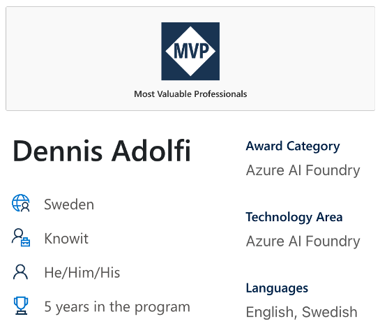 And as of today, there are only six Swedish Microsoft MVP's in the Azure AI Foundry award category: Find all Microsoft MVP's here.
